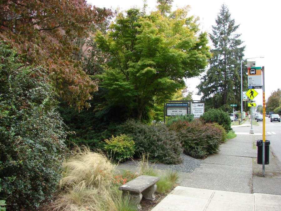 Bench and bus stop at Wedgwood Presbyterian.September 2024