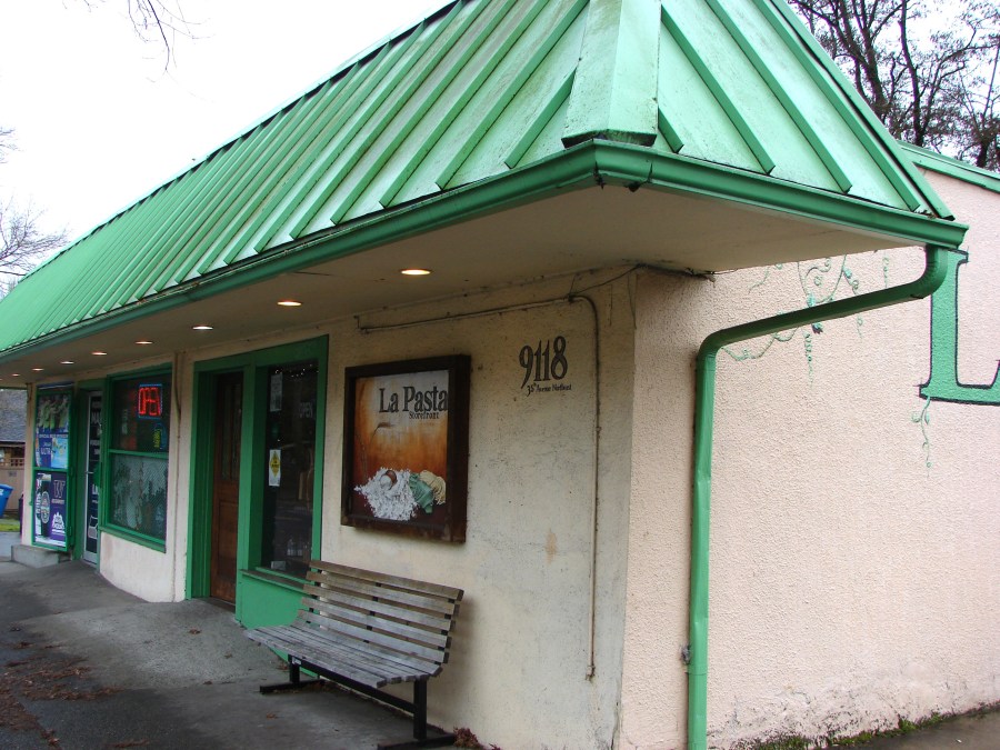 Bench at Morningside Market close-up at 9118 35th Ave NE
