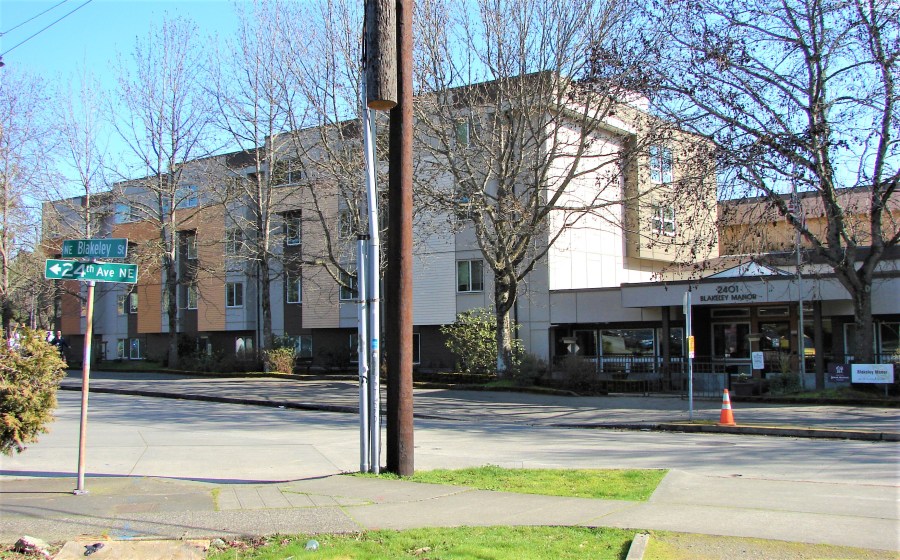 Blakeley Manor building at 2401 and intersection beyond.6 March 2022