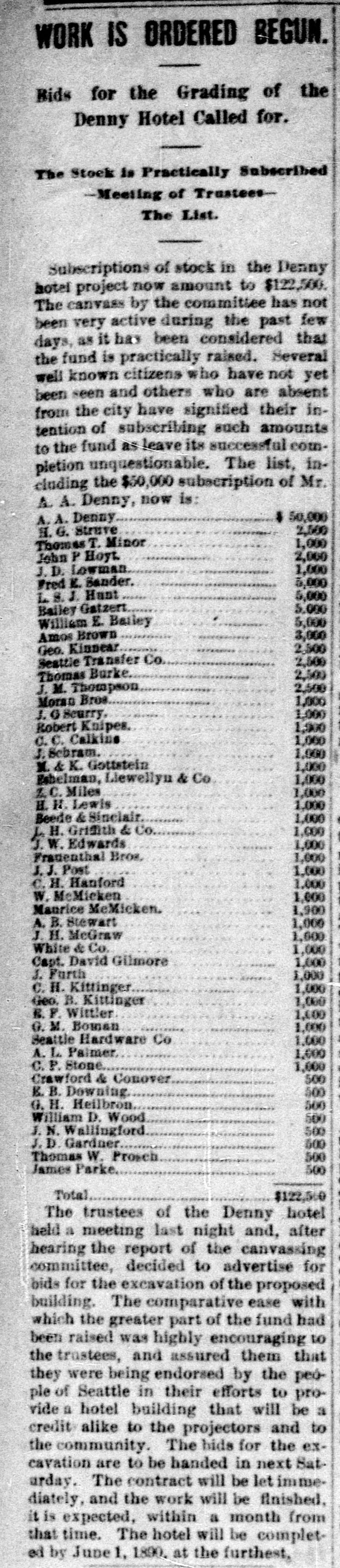 Boman in list of Denny Hotel investors.Seattle PI of 17 March 1889 page 5