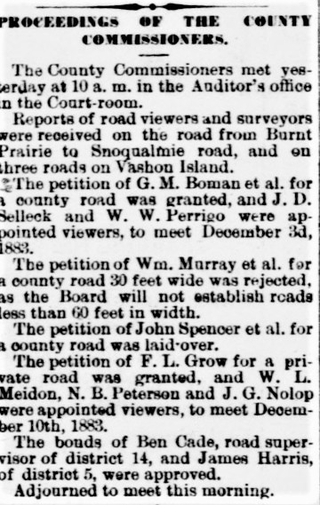 Boman road petition.Seattle PI 13 November 1883