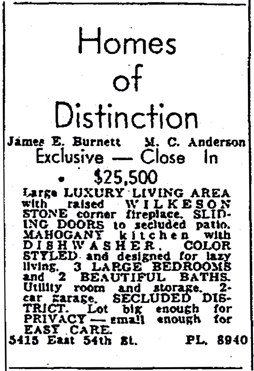 Burnett real estate ad.Seattle Times 17 April 1955 page 67