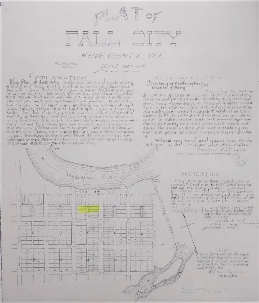 Fall City plat of 1887 by Jeremiah Borst