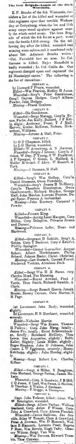 Gettysburg Iron Brigade Injury List.Wisconsin Semi Weekly of Milwaukee 17 July 1863 page 4