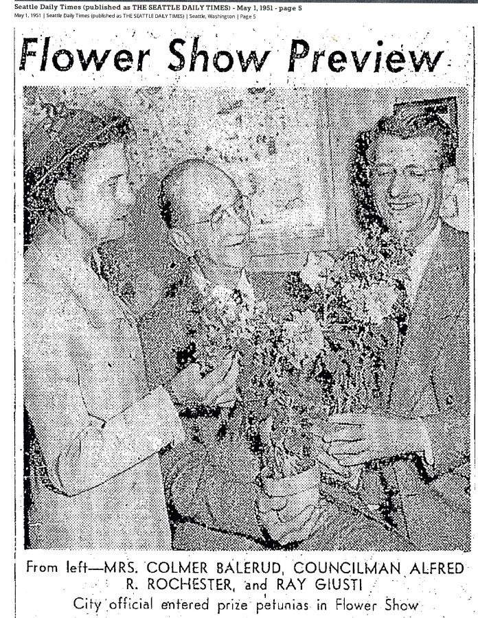 At right is Ray Giusti in 1951 at a flower show in Seattle.
