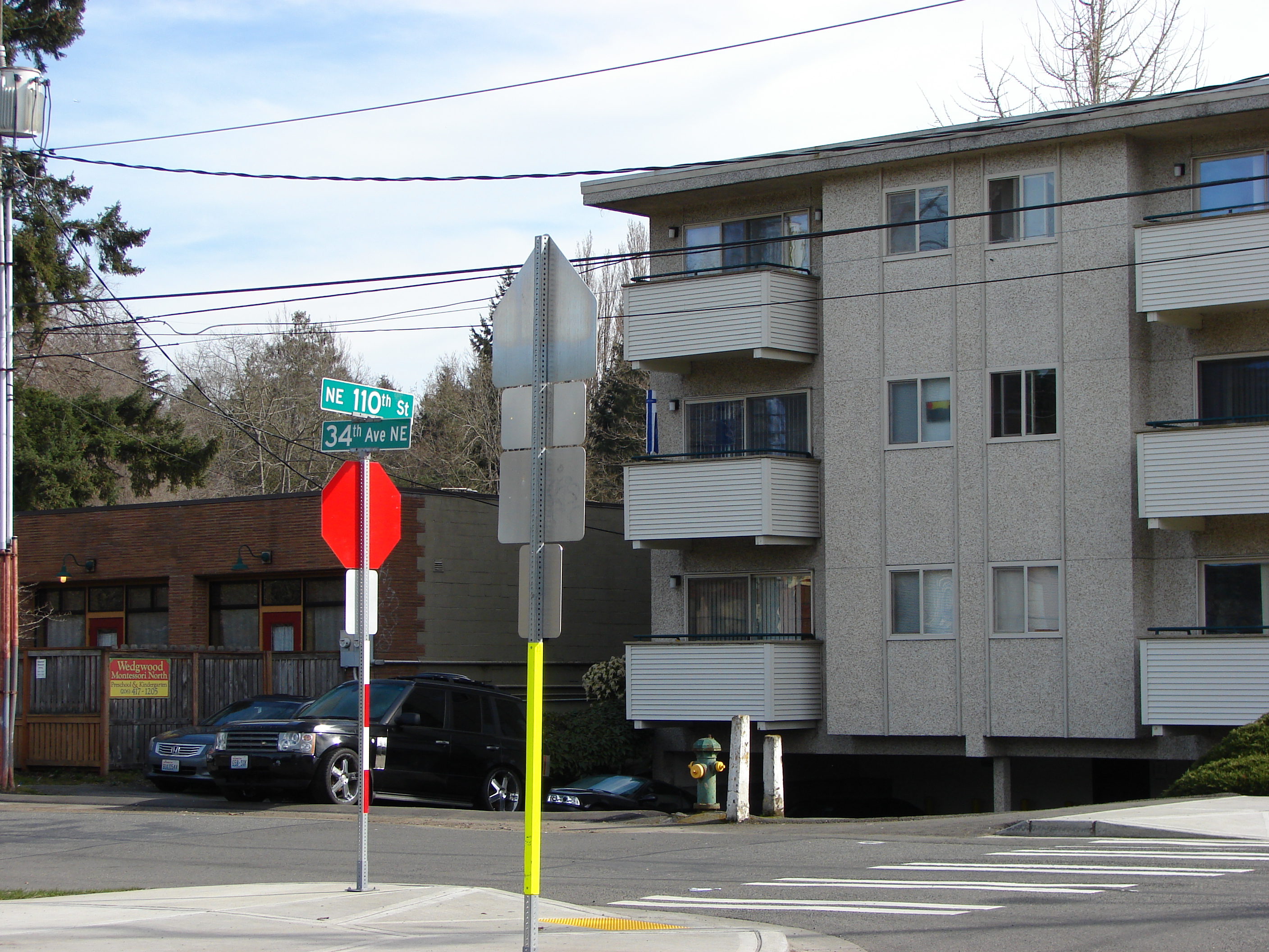 Jane Addams corner of 110th with apartment building.13 March 2021