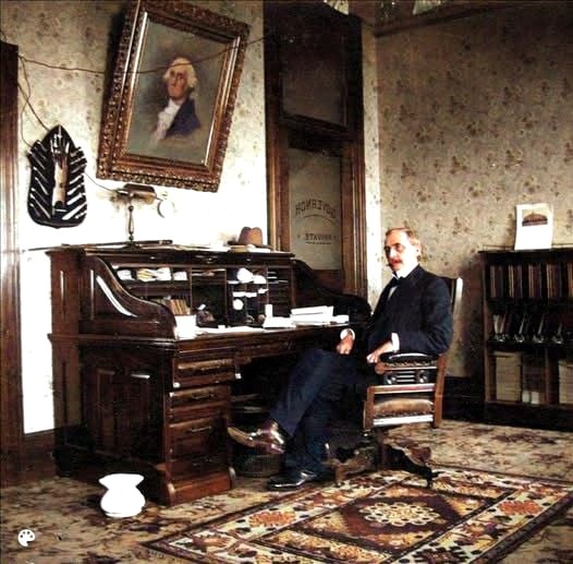 John Rogers in 1900 at his desk in Olympia colorized photo.Washington State Archives