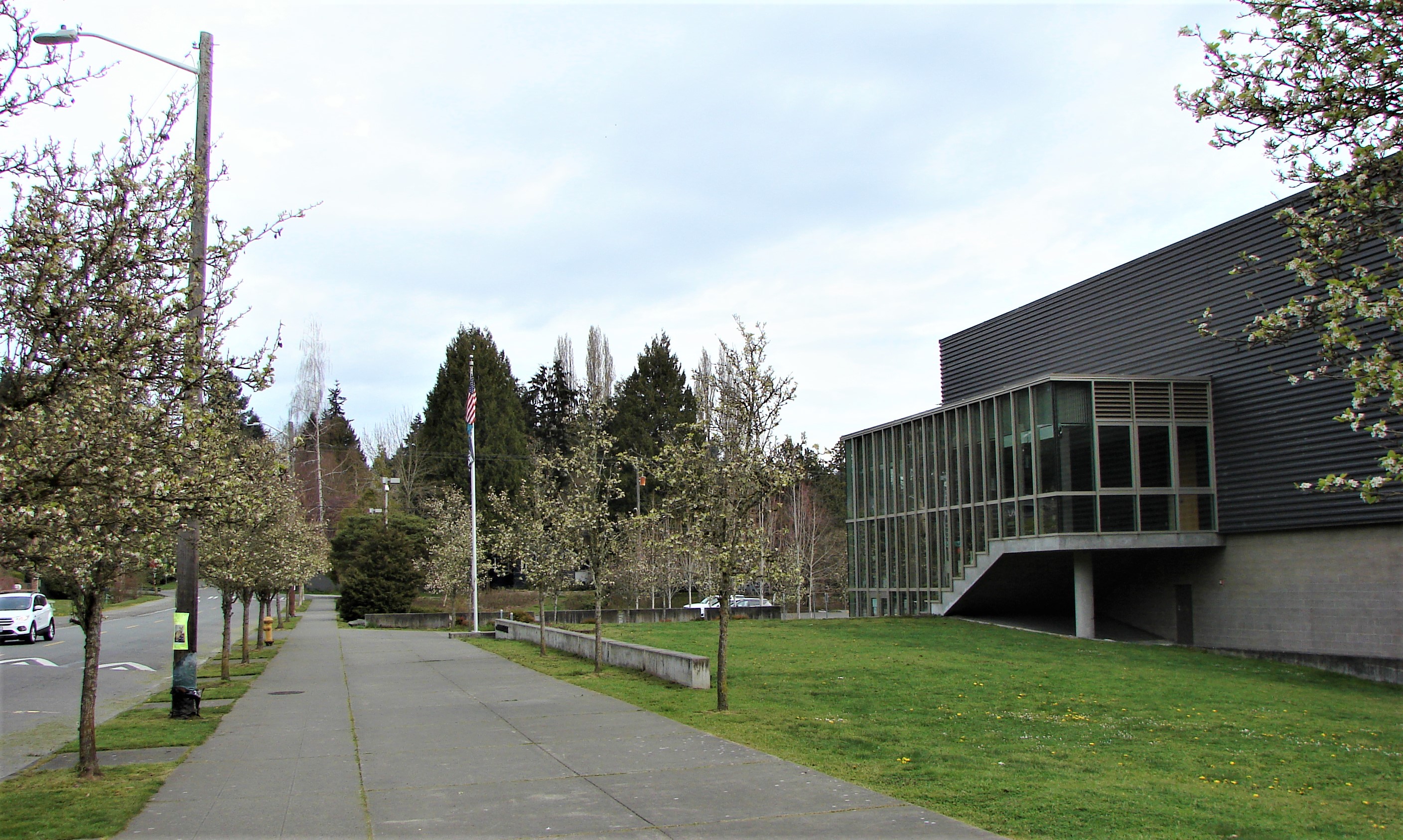 Nathan Hale High School looking north on 30th Ave NE.April 2021