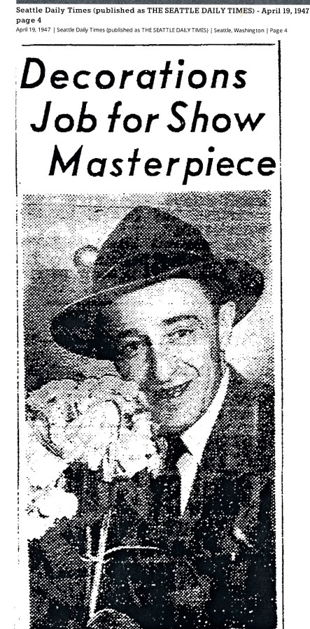 Frank was the eldest son of Palmiro Rosaia and was often featured in news articles. In this 1947 news article Frank is shown doing floral work for a home show. The news article says that his brothers Fred & Richard also worked at the garden show as did his brother-in-law Joseph Getz.