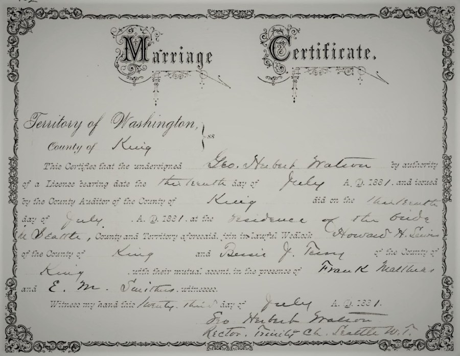 Terry Bessie marriage certificate of 1881