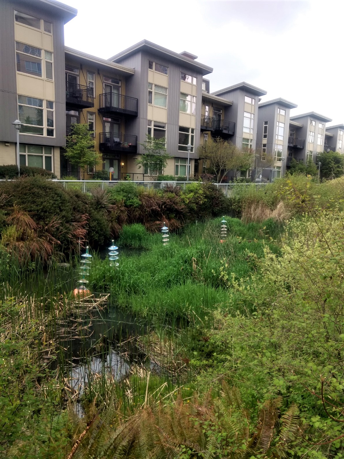Thornton Place apartments and water quality channel.April 2022